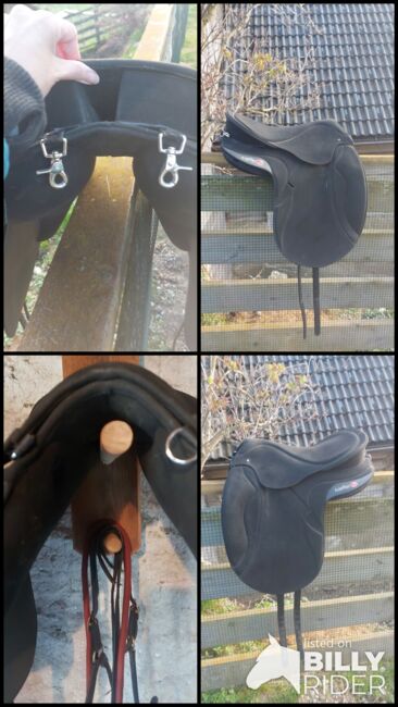 FURTHER FEATURES - Long straps - Movable V-girthing - Black suede - Seat size up to 18"