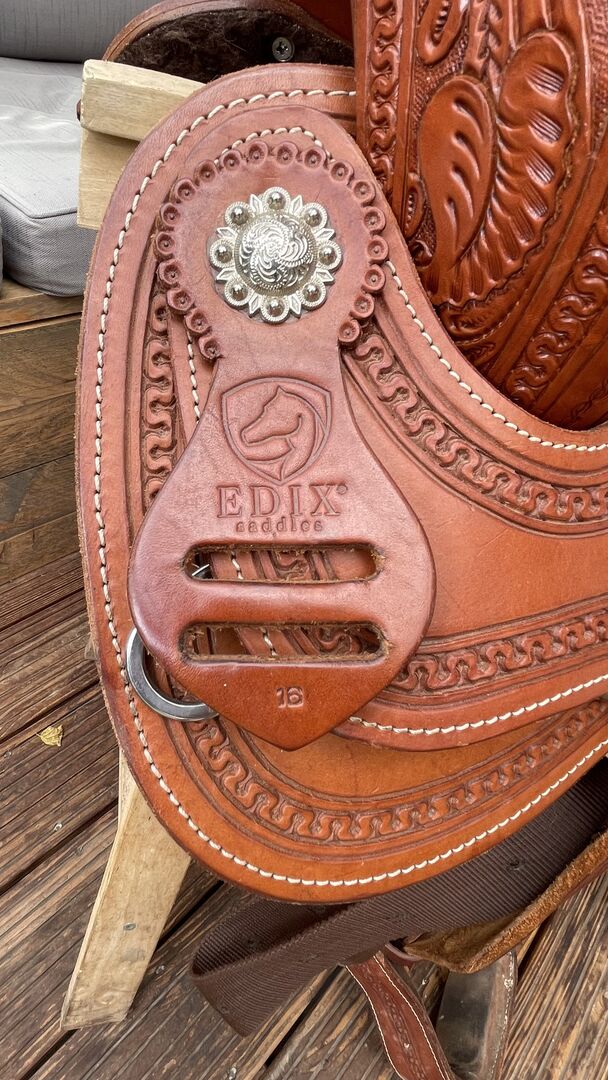 Treeless Western Saddle - Selling my western saddle "Oakley" from the brand Edix. The saddle has a 16 seat. The special thing about this saddle is that it is treeless and can therefore be adapted to any horse's back. It is also considerably lighter than a normal western saddle.