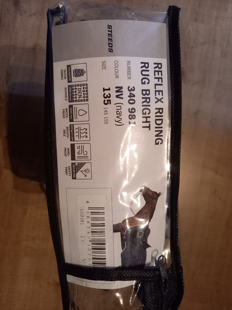 Unused 135 reflex riding rug from Steeds, navy with reflex in silver. - Offer here unused reflex riding rug from Steeds. In original packaging, was only on the pony to try it on. Unfortunately my little one has grown too fast and the rug is too short for him. Length 135cm, color navy.