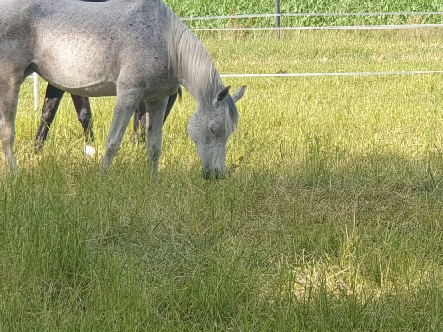 At 16 years old and 153 cm tall, she is fully rideable and ideal as a reliable leisure partner. She is affectionate, friendly and respectful - both with people and within the herd, where she ranks in the middle of the pack. She is flexible in terms of husbandry: She is familiar with open stables with 24/7 hay as well as a box with paddock access and feels comfortable in both. In terms of health, she is currently barehoof (previously shod at the front).