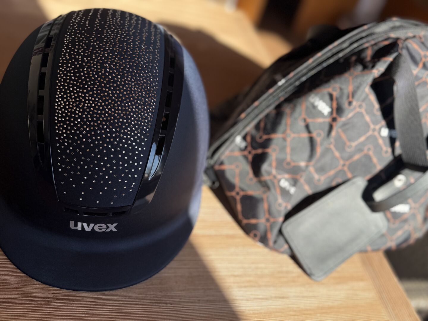 I am selling a beautiful Uvex Suxxed Flash in navy-crystal. The helmet has been worn twice and is absolutely accident-free (see photos). It was always transported in a Uvex helmet bag, which is included in the price. Unfortunately, it has become too tight and I am therefore selling it. The stones on the helmet are Swarovski crystals and are complete. Original price is 599.99 euros (see Fundis or other online retailers).