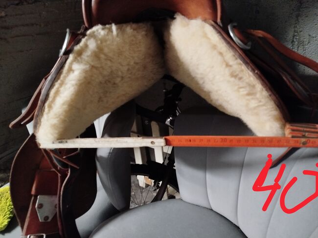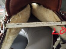 The saddle has a wooden tree and is super comfortable. Seat is 15 inches. 90 degree angle made for Quarter Horse. Total length 65 cm (short) Swing