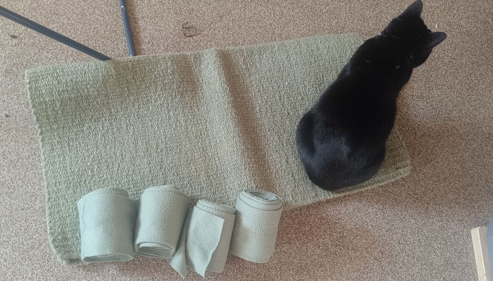 Various Western Blankets partly Mayatex - Various western blankets, some Mayatex. I would have matching fleece bandages for orange and sage green. Size all approx. 90cm long + 85 cm.