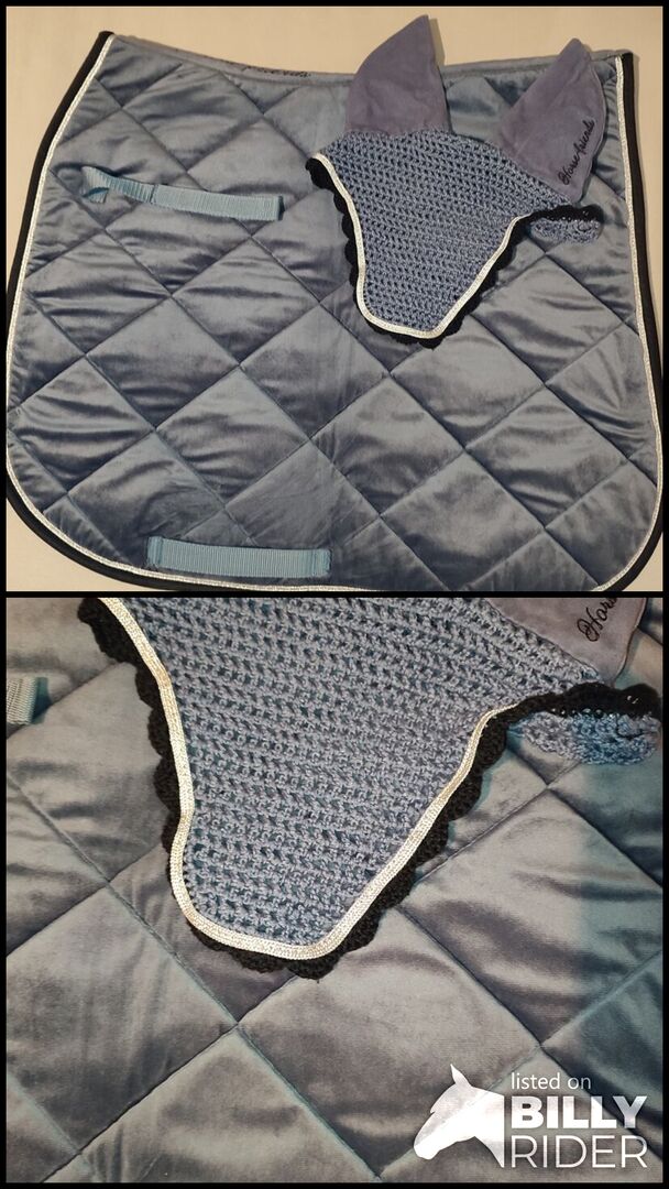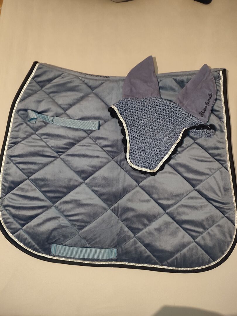 Velvet saddle pad - Very nice blue velvet saddle pad, very rarely used. With fly hood and glitter details