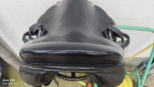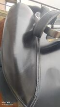 The saddle is in excellent, very well-kept condition! Minimal signs of use, no wear, seat, cantle, pommel all in tiptop condition, without scratches, abrasions etc.. Even the saddle flaps show no real signs of wear. The panels are soft, padded with wool. Banana panels, French suspension.