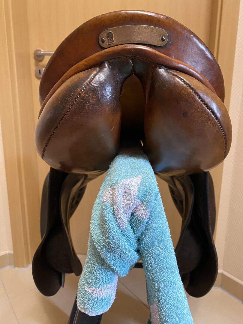 Waldhausen Jumping Saddle Moll Olympic-Super - Older jumping saddle from Waldhausen model Moll Olympic-Super in brown. Bought second-hand only a year ago, but no longer fits after grazing... Private sale, no guarantee or warranty