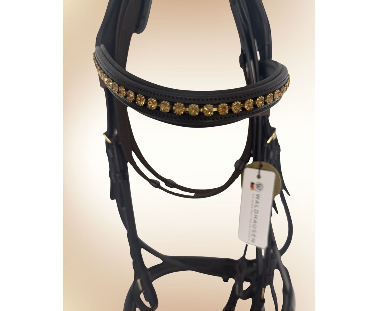 These include this beautiful snaffle from Waldhausen from the S-Line, in an elegant dark brown. It has an ergonomic, particularly soft headpiece and is extremely comfortable to wear. It is also decorated with high-quality rhinestones, which give it an elegant touch. So feel free to drop by from time to time or write to me if you are looking for something specific - maybe there is just the right thing for you!