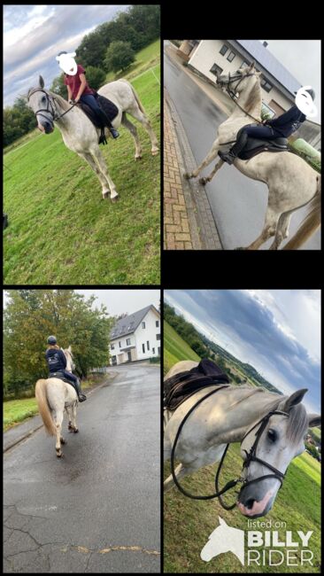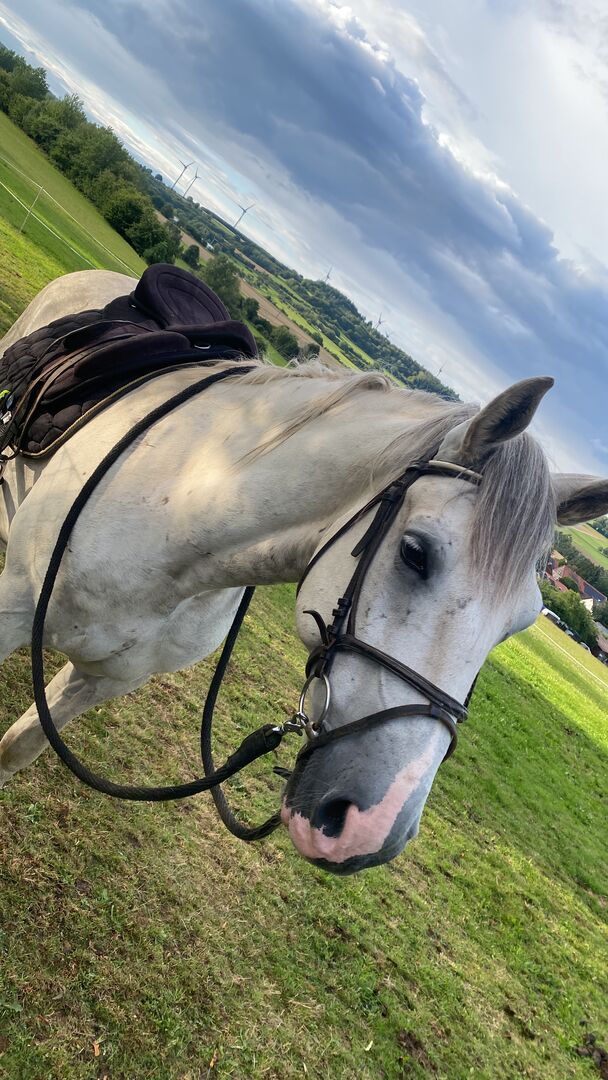 We are looking for a new home for our 8 year old warmblood mix gelding looks like a Spaniard (apple gray) only if everything fits he is absolutely not a distress sale and is really looking for his perfect people . He is about 1.58 tall and has a solid foundation and good conformation. He is also ridden in the field. He is well behaved in the field and can also go out alone when he has confidence. Unfortunately he has been standing for most of the winter. At the moment we have started training and building up his muscles again and are also trying his hand at jumping, he does a great free jump and still has potential for improvement. He is dominant towards strangers and has to get to know you and understand who is boss. With me he is like a lamb and you can do everything with him. If you know how to take him he is a great companion and partner. It's not easy for me but I have to admit to myself that I no longer have the time for him that he needs. He has to work otherwise he gets bored. He is super well-behaved at the farrier or the osteo or at the vet . He gets bored with his