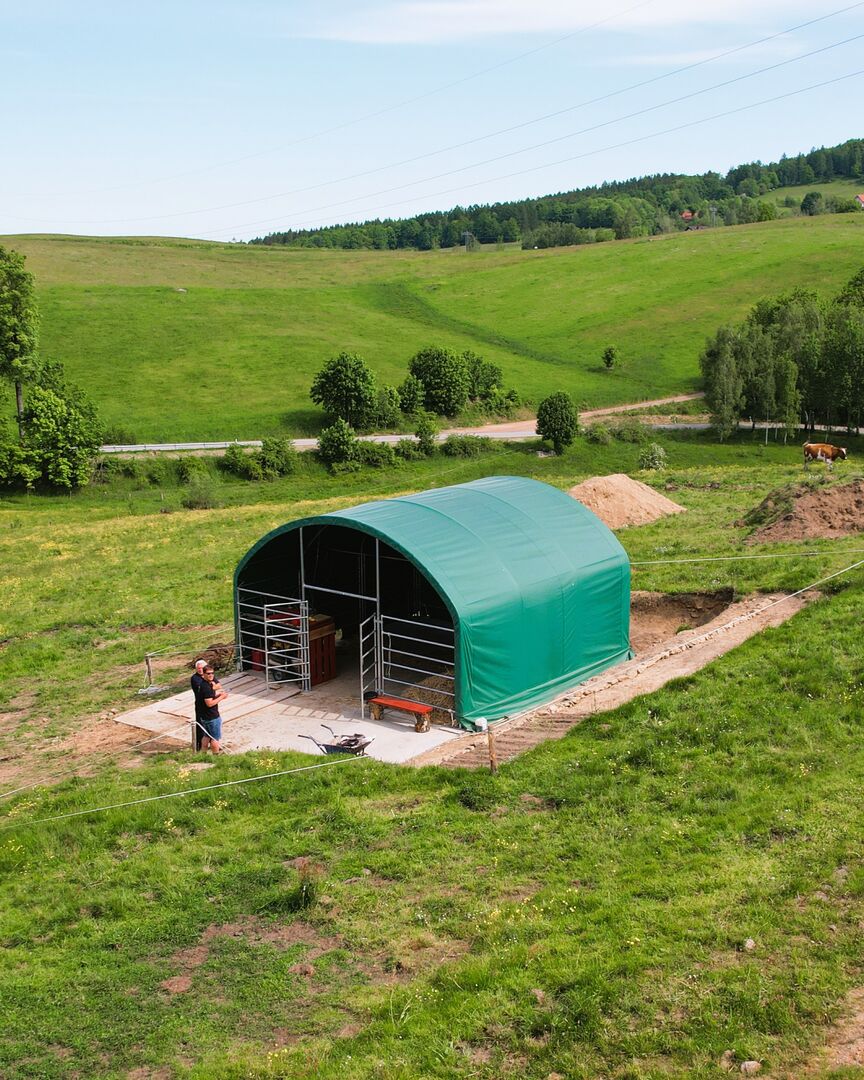 Weidezelt 6x6 m CT2020 - Stabiler Unterstand für Pferde, Schafe, Ziegen und Alpakas - Robustes und funktionales Weidezelt 6x6 m CT2020 für den ganzjährigen Einsatz auf Weiden, Paddocks und landwirtschaftlichen Flächen. Dieser praktische Unterstand bietet Ihren Tieren zuverlässigen Schutz vor Regen, Wind, intensiver Sonne und wechselnden Witterungsbedingungen. Ideal für Pferde, Schafe, Ziegen, Alpakas, Rinder und andere Nutztiere.