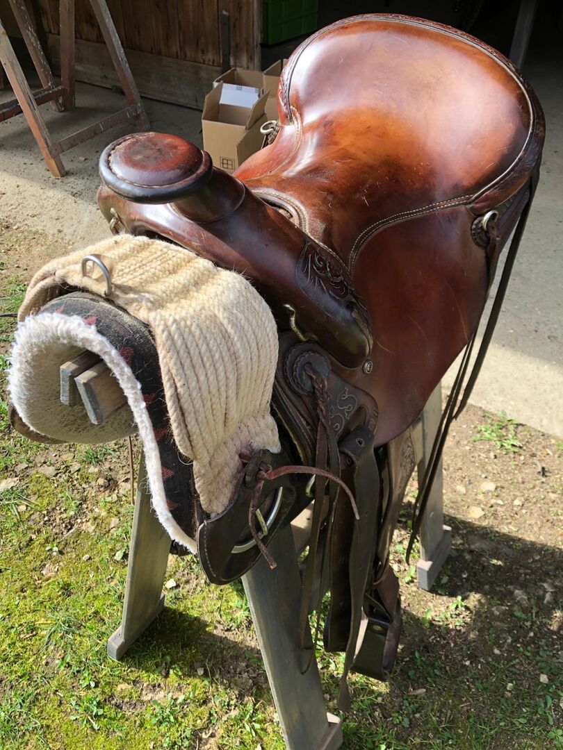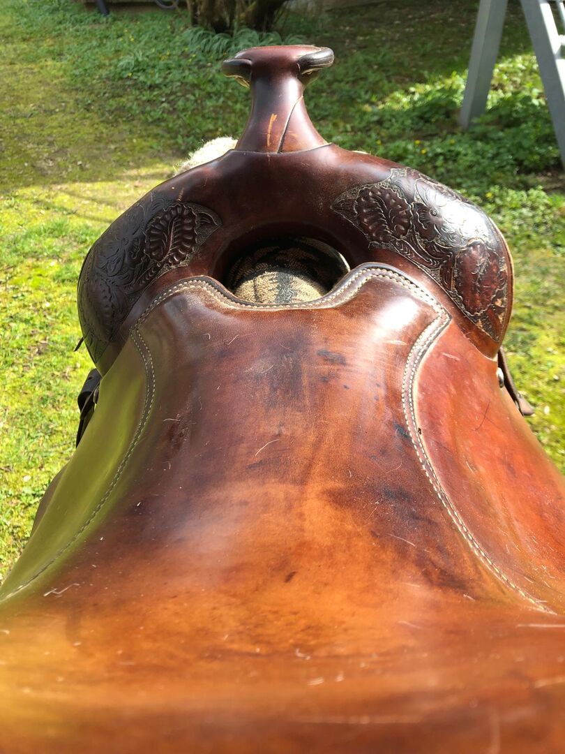 western saddle - We are selling our western saddle, which has served us well for many years. The western saddle is rounded at the back and therefore also suitable for shorter horses. It is now getting on in years and needs some care. See pictures for signs of wear. We hope to find someone who will enjoy it :)