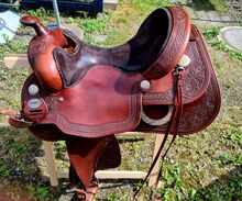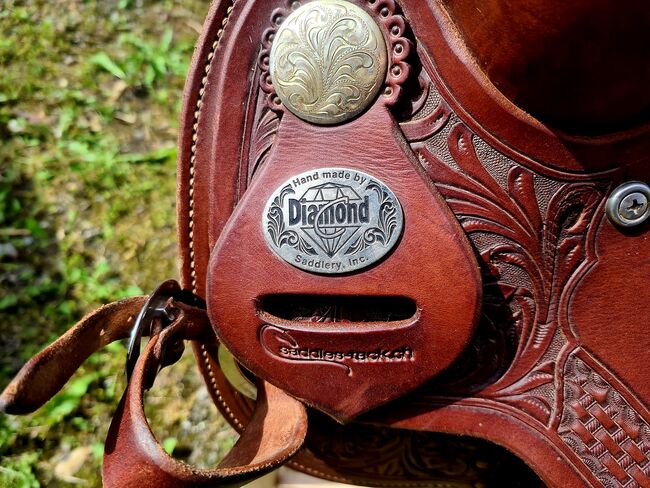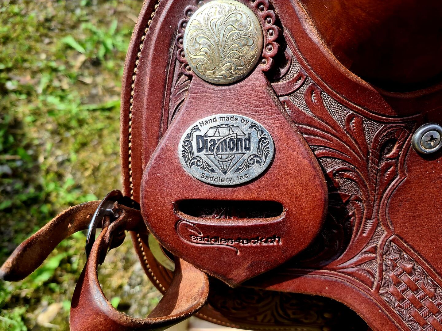 - Diamond C western saddle in butterfly brown with basket/flower pattern