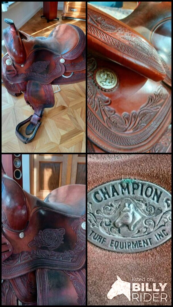 Western saddle Champion Turf - I sell my western saddle of the dream brand Champion Turf, Equipment INC. The saddle is equipped with a Full Quarter tree with medium swing, steep bars and a very nice floral hallmarking.