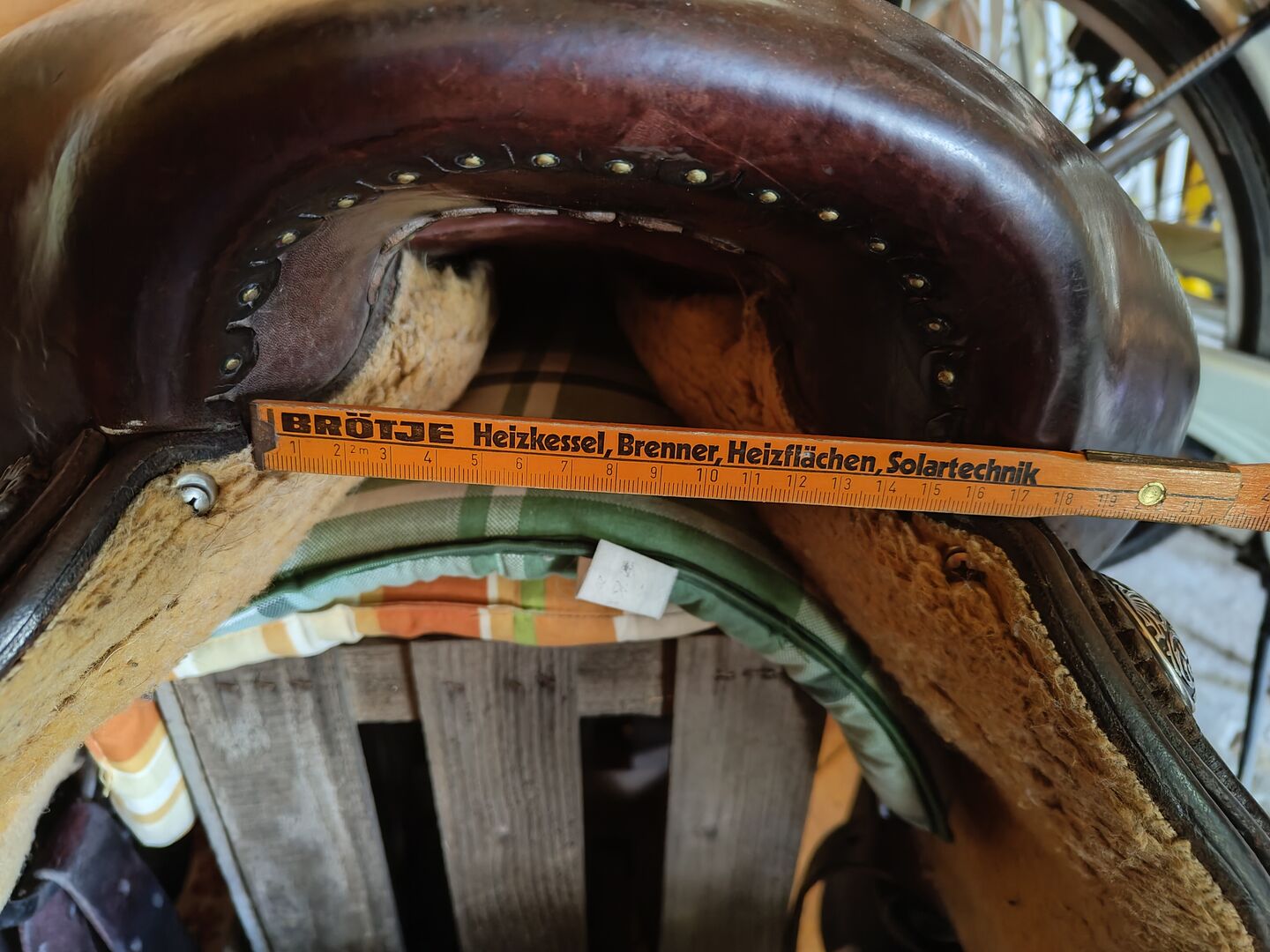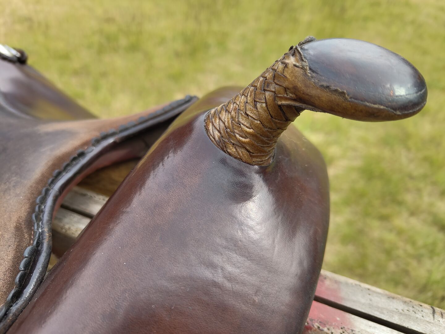 The saddle is perfect for horses with a short saddle pad and a slightly wider shoulder.