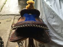 Western saddle for full-size pony - Western saddle was on the pony twice. The pommel is still wrapped from transportation. See pictures for dimensions.