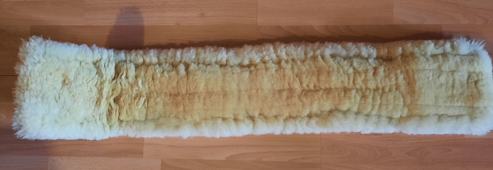 Western Saddle Girth Lambskin - I offer a little used western saddle girth made of lambskin from Christ. It has a length of 28" (70 cm) and has two D-rings in the middle. The lambskin is natural and the rest is brown. I have hardly used the girth.