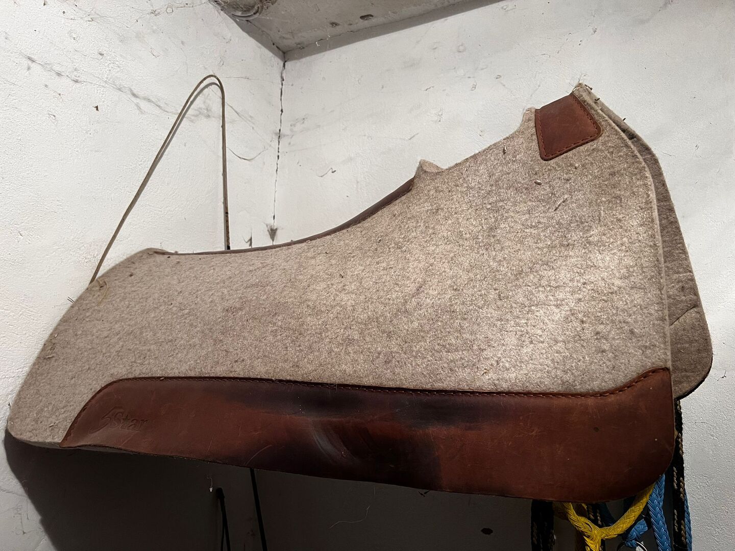 Western saddle with high-quality felt pad - We are selling our quality western saddle, including a very high-quality felt pad, because we are no longer keeping horses. The saddle was mounted on a 150 cm tall young mare (mix of noble warmblood and Paso Peruano) and was rarely used by us until it no longer fitted the horse. Since then it has been stored safely in a dry and dark place. Of course, it's too good to just lie around, so it should definitely be put back on a horse.