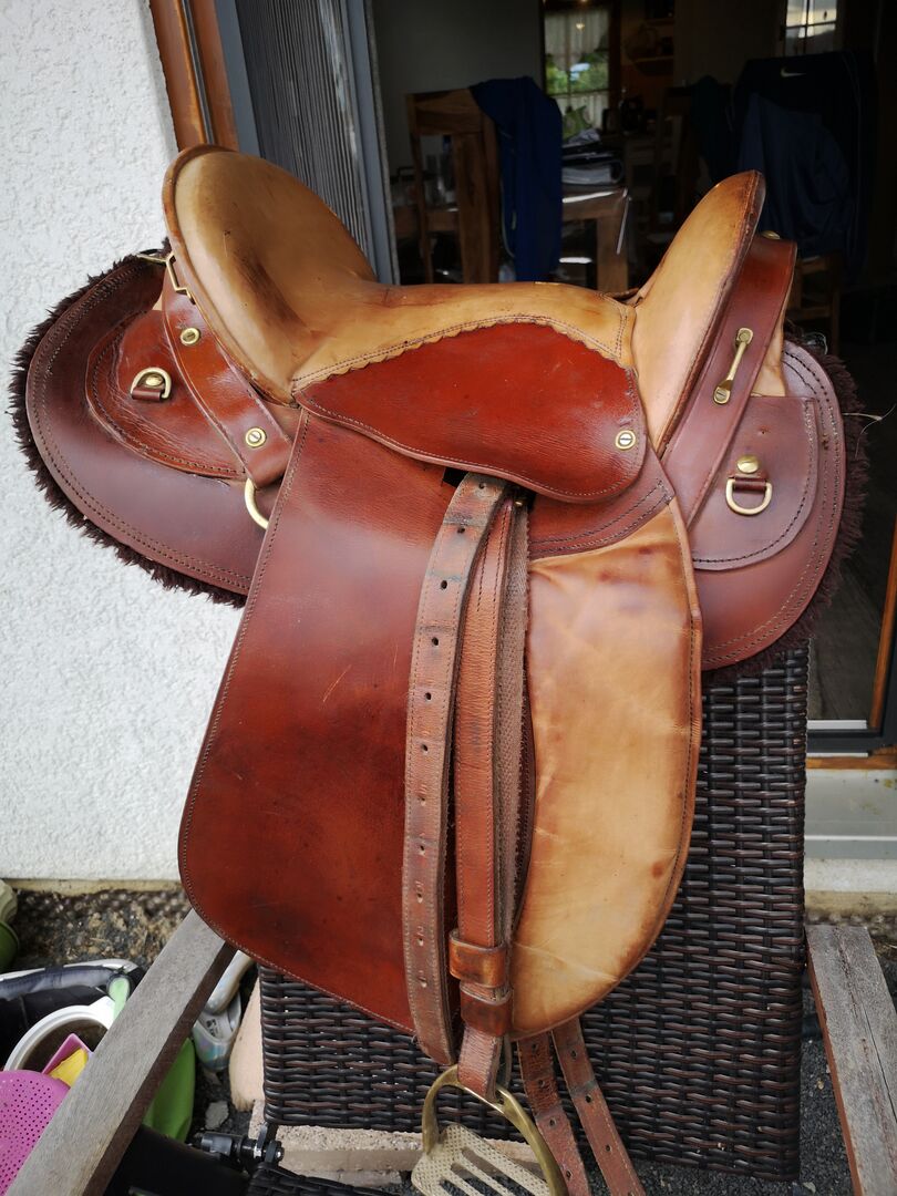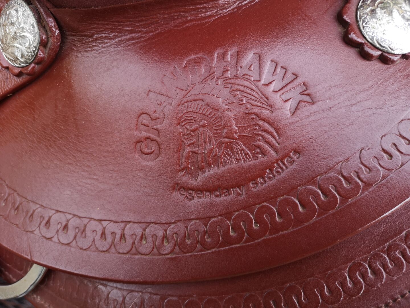 Western saddles - Sell 2 western saddles. One of the brand Grandhawk in beautiful reddish brown color, size 16.5 and one without manufacturer's plate, seat 16 very comfortable, two-tone. Condition see pictures. The Grandhawk we have used only 1x, did not fit. Private sale, without warranty and guarantee. Shipping for 12 € possible. Price is per saddle.