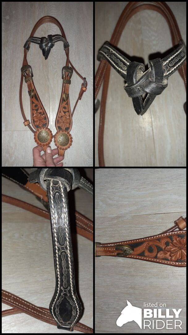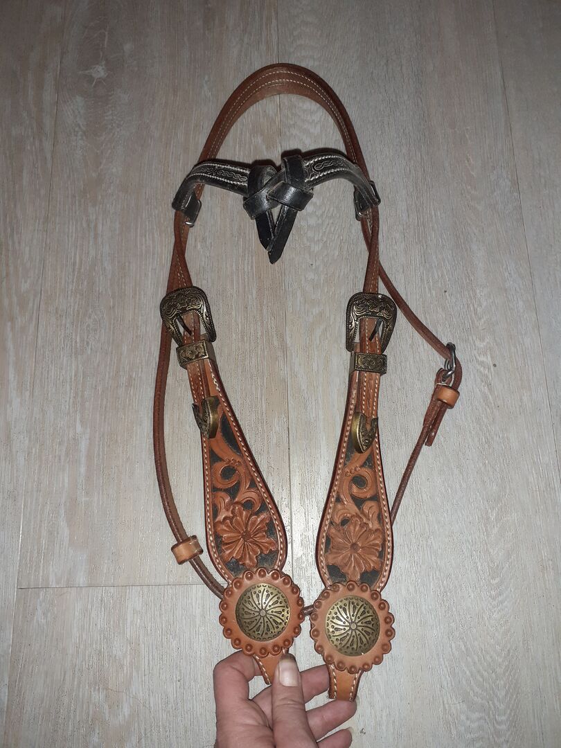 Western snaffle, Western bridle - New bridle is not used. Great decorations, conchos and buckles.