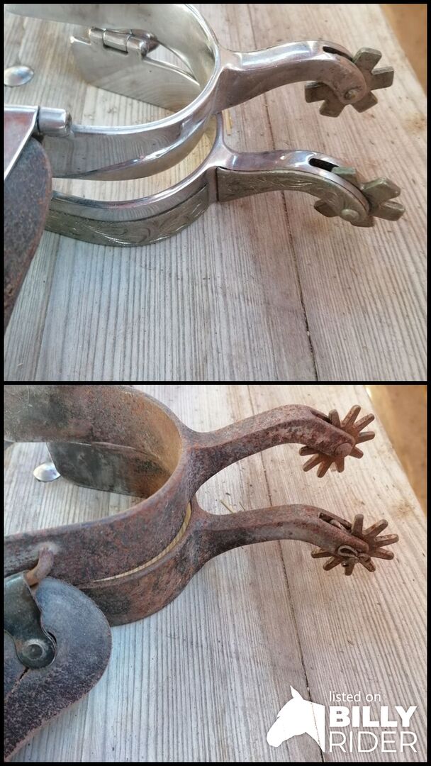 Western Spores - 2 pairs of spurs! Silver 30 incl. shipping and the rusty 22 incl. shipping, with spur straps, PayPal welcome!