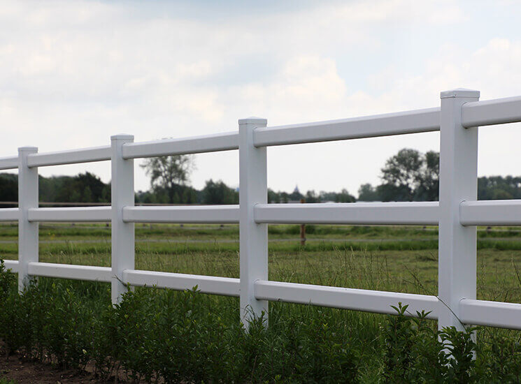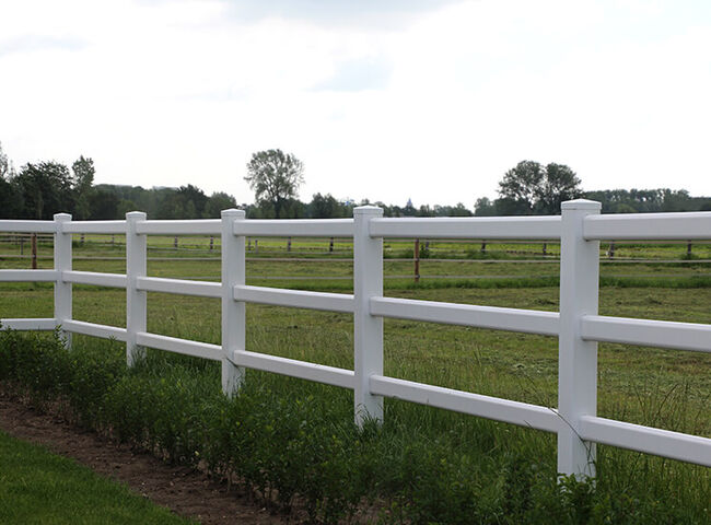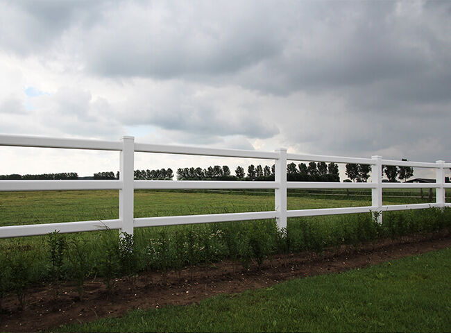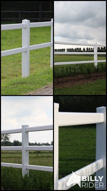 Der Kunststoff Zaun eignet sich hervorragend für Gartenanlagen, Pferdekoppeln, Reitplätze oder Paddocks. Passende Tore sind ebenfalls verfügbar.