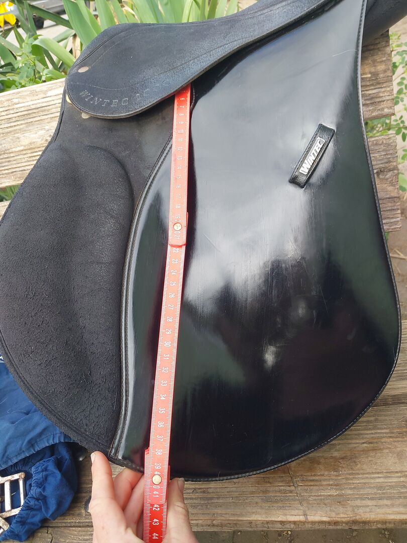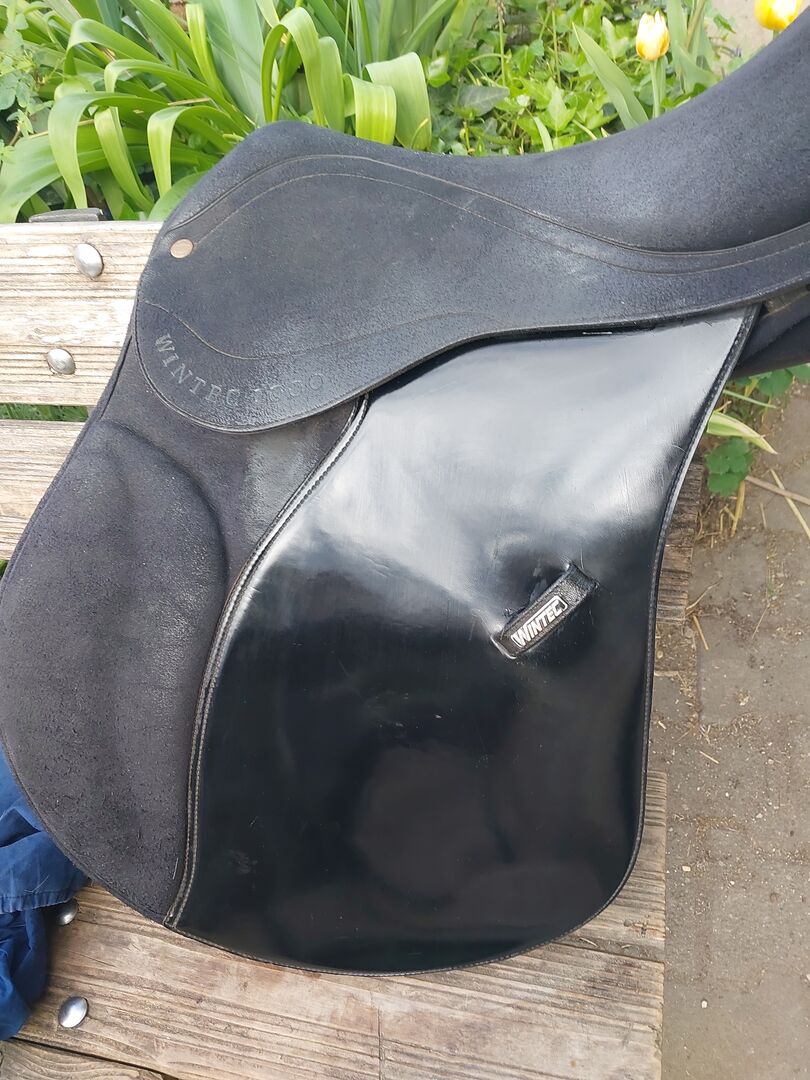 Wintec VS Saddle 17.5 - I am selling a well-preserved Wintec eventing saddle in size 17.5 inches. The saddle is made of easy-care, hard-wearing synthetic material and is ideal for leisure and all-round riders. The saddle has been used regularly but is in good overall condition. There are normal signs of wear (see photos), but these do not affect its function. Particularly practical: the material is weather-resistant and easy to clean - perfect for everyday use. Details: Brand: Wintec Model: Versatility (VS) Seat size: 17.5 inch Color: Black Condition: used, well cared for Lightweight & easy care Notes: Private sale, therefore no guarantee or return. Shipping possible for an extra charge or pickup preferred. Please contact us if you have any questions