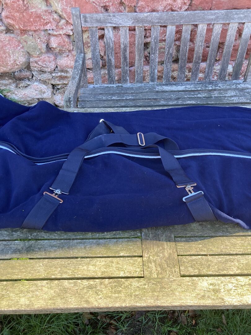 Wunderschöne dunkelblaue Abschwitzdecke mit silberner Kordel in 155cm Länge zu verkaufen. Die Decke lag nur 3-4 mal am Pferd, ist also quasi neu. Die Decke hat einen dick gepolsterten Kragen, verstell- und abnehmbare Kreuzgurte, einen einfachen Schnallenverschluss vorne mit breiter Abdeckung mit Klettverschluss und einen sehr chicen silbernen Schweifriemen. Sie besteht aus doppelseitigem Fleece, ist Atmungsaktiv, nimmt schnell Feuchtigkeit auf und darf sogar bei 30 Grad in der Maschine gewaschen werden. Neupreis war € 55,- Die Decke wird nicht mehr verwendet und vor Übergabe gewaschen. Versand möglich oder Abholung in Wien oder Nähe St. Pölten