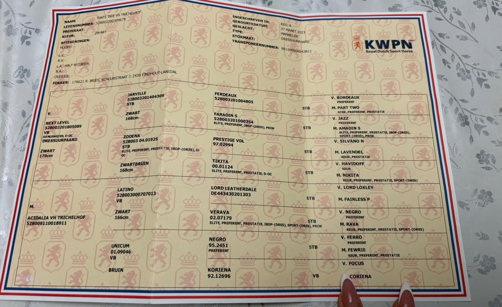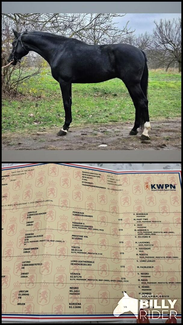 Young KWPN stallion by Next Level - Young KWPN stallion by Next Level For sale is Thats Tate VH Trichelhof, KWPN stallion bred in Belgium, 2,5 years old, approx. 171 cm, correct build and healthy. Sire: Next Level (Jarville - Zodena) Mother: Acidalia vh Trichelhof (Latino - Unicum) Elastic, expressive basic gaits, lots of potential for sport and breeding. Calm and uncomplicated in handling. 5630 Békés, Hungary WhattsApp: +36 20 276 4693