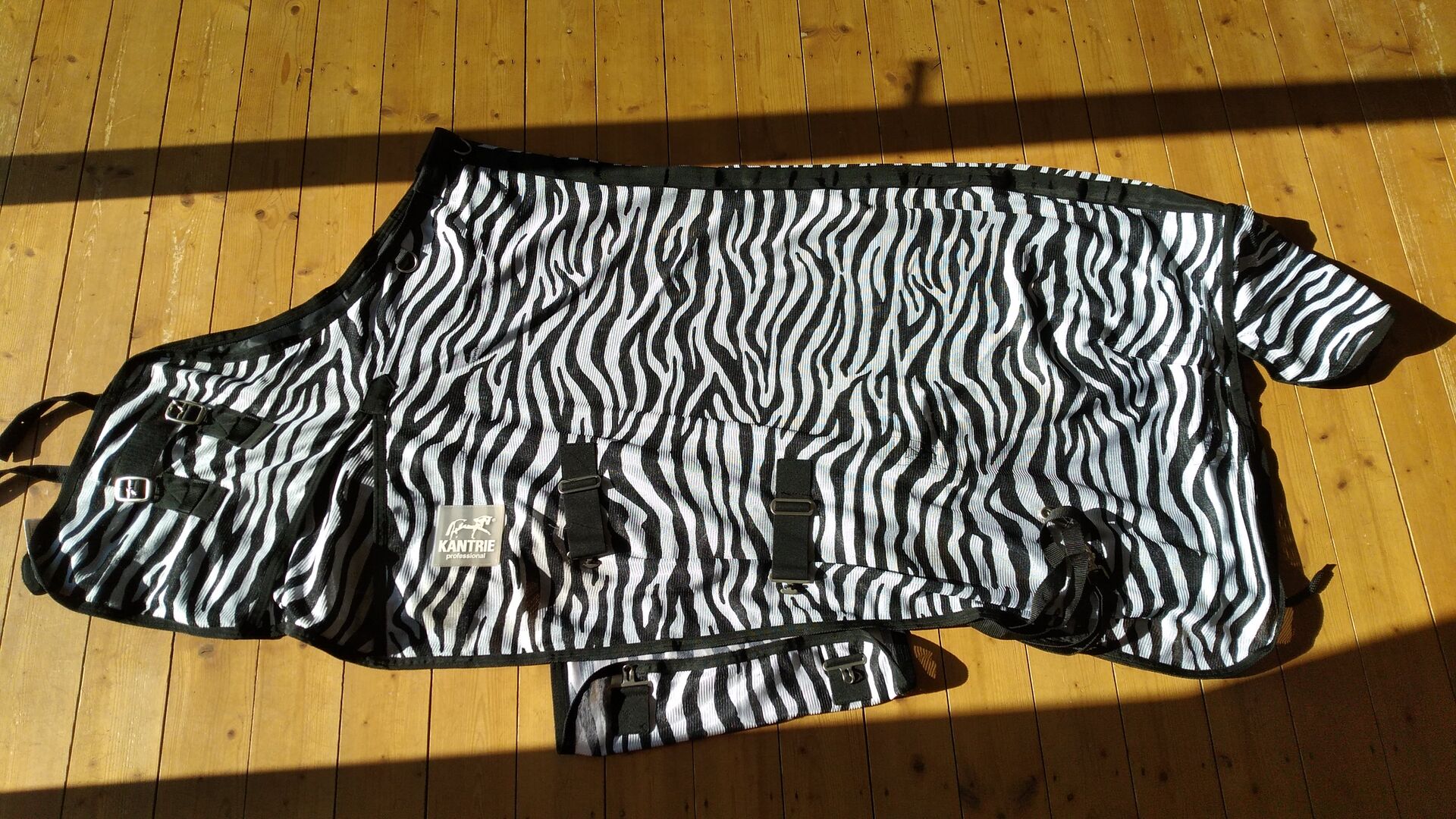 Zebra fly blanket with belly bib, 115cm - Sell my Zebra fly blanket with belly bib, size 115cm. A neck piece can still be attached additionally (must be purchased separately).